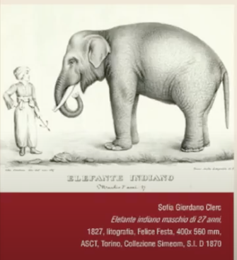 Ill.10 Sofia Giordano Clerc, Elefante indiano maschio di 27 anni, (A 27 year-old male elephant) 1827, lithograph by Felice Festa, ASCT