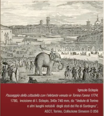 Fritz was not the first Indian elephant whose presence in Piedmont is documented. In the eighteenth century an elephant belonging to two gentlemen had already been paraded in the civic festivals of Turin